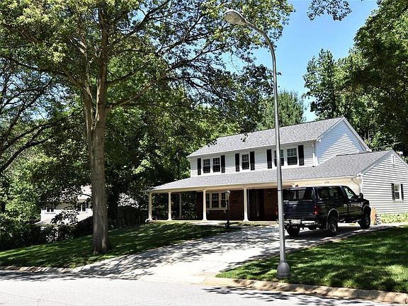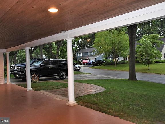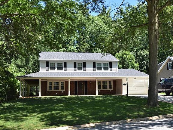 Elegant Colonial with extensive hardscapes: spacious portico with stately columns,recessed lighting, ceiling fans, motion sensor security lighting stone walkways & large backyard. There are also convenient multiple outdoor power sources (including outlets on each column) & water spigots. Living room has built in shelving & naturally sunlit from multiple windows. Main level has extensive Brazilian hardwood flooring. A convenient updated half bath. Fully remodeled kitchen, brand new appliances-quick boil & grill burner stove & convection oven. 2 Exhaust fans in kitchen, granite counter top with eat-in/bar seating. Multiple storage areas with new cherry cabinets. Double French doors open into spacious rear portico with separate space for barbecue grill. Laundry/utility room has side exit door to back yard. Upper level has four bedrooms, 2 with built-in cabinets. Both hall and master baths have been upgraded -glass enclosed showers, granite vanity tops. Ample closet spaces in each bedroom