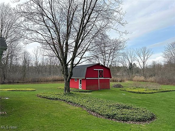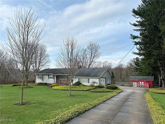 Meticulously maintained Ranch home with 3 outbuildings on almost 6 acres in the West Geauga School District. 3 generous sized bedrooms with 2 full bathrooms. Oversized Eat In Galley kitchen with beautiful cabinetry, appliances and indoor Grill. An oversized Living Room has a decorative pot belly stove and is open to the dining room. The front door entry is currently being used as an office. The lower level has a partially finished recreational room with another bricked Gas Fireplace along with an oversized crawl space for storage, and a workshop area in the utility room. The enclosed sunroom/family room has a gas fireplace and plenty of natural light overlooking the picturesque back yard complete with 3 outbuildings, a pond, and the back woods full of nature. Attached 2 car garage with an elevator lift for easy access in and out of house. Generac Generator. 1 year Home Warranty.