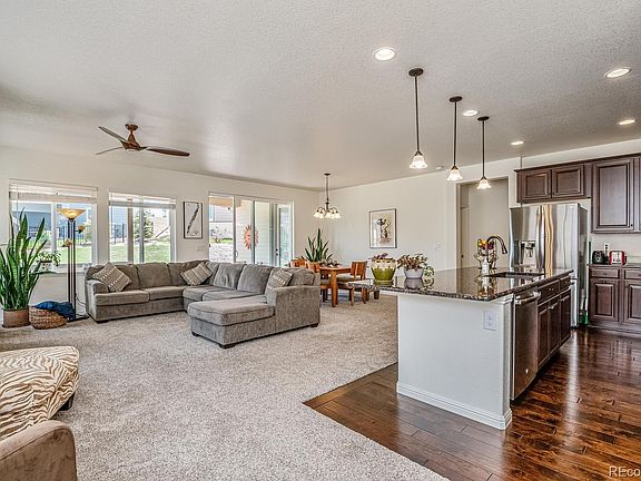 Skyestone, 55+ Active Adult neighborhood is a fabulous place to live! Located on the west side of Broomfield the foothills are practically in your backyard. Please come to see this wonderful Flatirons Model built by Taylor Morrison. This open floorplan has so much natural light shining in! Large kitchen island perfect for entertaining, covered patio, Easy main floor living. Most popular 2000 sq ft floorplan. Upgraded kitchen includes a large island containing a granite composite large single bowl sink/cabinetry/pendant lighting/drawer pull-outs and more. Upgraded carpeting throughout the main level. Beautiful Linear fireplace in your cozy living room. 2nd Bedroom has an en suite bath and walk-in closet. Sunny master bedroom has a doorway out to the deck/large walk in shower with added feature strip and beautiful bronze hardware. Only 2 steps from the garage into the mud room and laundry. Convenient bench seating in mudroom along with additional cabinets for storage. Both the garage and main living area have many additional electrical outlets. French door entry to the office. Basement is already finished for you! Large multipurpose room/bedroom/walk-in closet and full bath is all set for your guests:) Miles and miles of trails await you! Swim, work out in the fitness area, take classes, play Pickle Ball to your hearts content. Enjoy concerts, events, cooking classes and a variety of other special programs at the georgeous Skyestone Rec center! Motivated Seller! Bring us an Offer!
