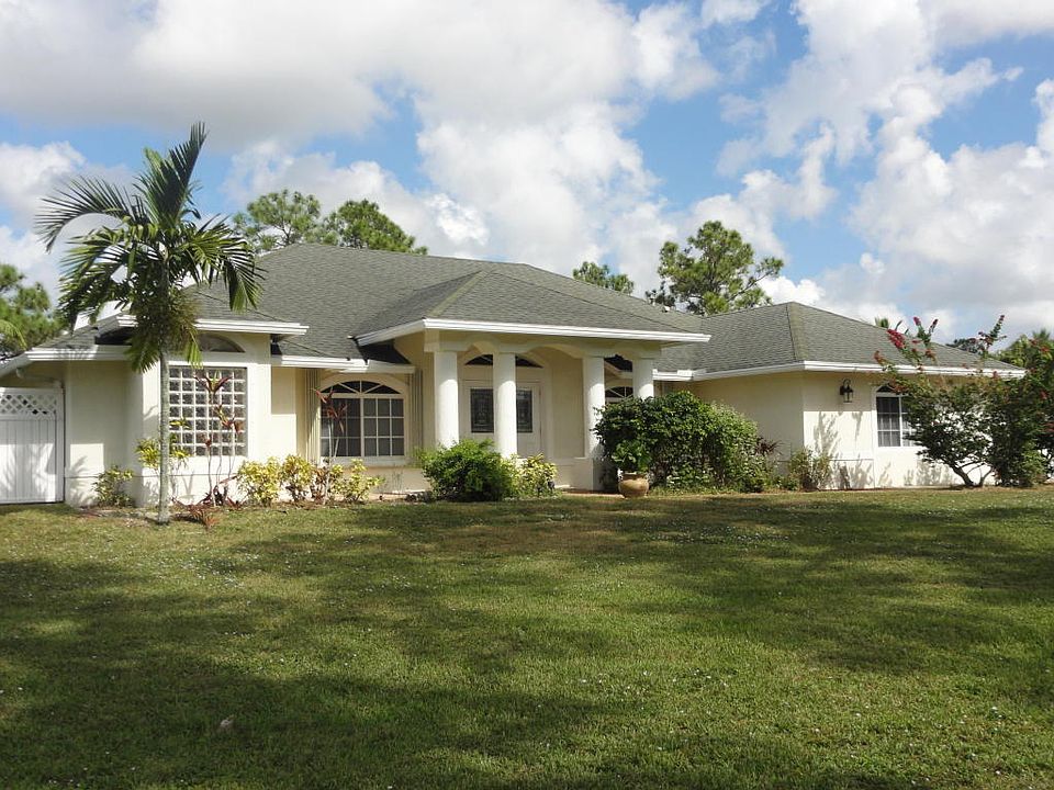 If You Like Privacy.. You will love this 4 bedroom home with excellent curb appeal. Located at the end of the road just off paved Coconut. Large yard to play in or enjoy the serenity from the covered and screened large back patio and large deck. Room for the family with 4 bedrooms, a dining room, living room and a family room.The kitchen offers wood cabinets,stainless range and refrigerator, pantry and breakfast bar. The large Master has wood blinds, wood floor, walk in closet and French Doors leading to the patio area.Other features include an alarm system, water treatment system, ceiling fans, mirrored closet doors, gutters and two sheds. The shed has power with a generator hook up. Accordion shutters on some windows. Horses and pets welcome. NO HOA. Make this one yours.