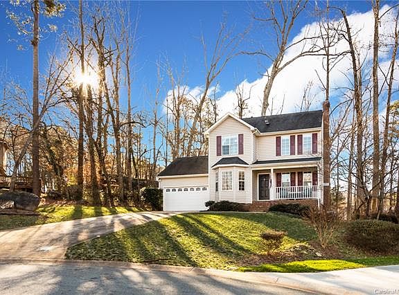 Dynamite home located on a heavily treed cul-de-sac lot that backs up to the Torrance Creek Greenway! Home features gleaming hardwood flooring throughout the first floor. Spacious family room features a cozy wood burning fireplace and tons of natural light! Updated Kitchen features quartz countertops a hexagon tile backsplash, stainless steel appliances, and painted white cabinets! The upstairs master bedroom features a vaulted ceiling, walk in closet, with a separate tub and shower, with tons of counterspace in the bathroom! The exterior of the home features easy to maintain vinyl siding and large front porch. The backyard features unparalleled relaxing views of nature from a huge deck with plenty of space for entertaining! Additional upgrades were a new furnace and HVAC installed in 2017 as well as a Tankless water heater. Fireplace features a new chimney flue as well! Amazing location in Huntersville as well as it is convenient to schools, shopping, dining, and highway access!
