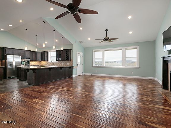 Incredible setting for this 3-bedroom home. 1.71 acres allows for views across the rolling hills as well as backyard space for the imagination. Open floor plan with custom concrete counters in the kitchen. Alder cabinetry and stainless-steel appliances. Windows take advantage of the southern sunshine during the winter days. Hardwood floors in the main rooms. Primary bedroom with en suite bath and door to back patio leading to the hot tub. This home comes with a fantastic newer additional living space complete with bath, laundry and snack area--perfect for the visiting guests or family game room. Three car garage with one bay customized for shop area. Wrought iron fencing for the front entrance and cyclone for the rest. Enjoy fresh blueberries and the fruit trees in the summer. This home is ready!
