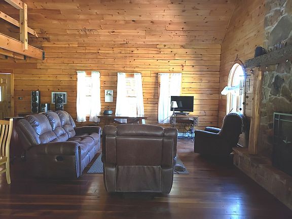 ACCEPTING BIDS UNTIL 8/31/22. OWNER RESERVES RIGHT TO REJECT ANY & ALL BIDS. Wonderful property featuring privacy & seclusion, a log home (cabin) on approx 10 acres. Live here full-time or make it an awesome getaway. Log exterior w/metal roof & Anderson low-E windows. Knotty pine interior walls w/various HW floors including walnut, wild cherry, black cherry & hickory. Authentic stone fireplace stretches from floor to vaulted ceiling. Kitchen has oak cabinets & a center island w/bar seating. There are covered decks on front & back to enjoy the nature that surrounds & abounds. Property is in Clean and Green for property tax savings. Lge shed w/attached carport serves as shelter for a boat & other toys. Per owner, land has not been farmed since 1949 & qualifies as organic.
