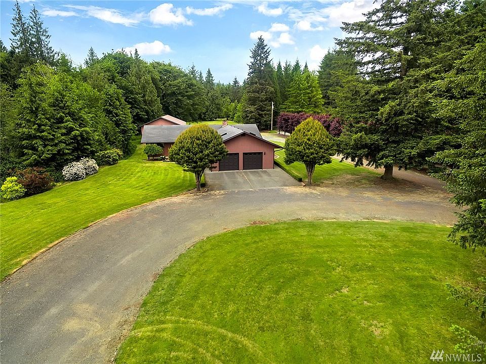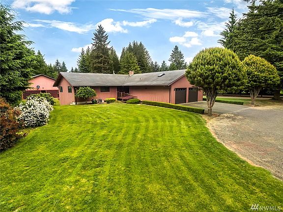 Expansive daylight rambler boasts manicured, level 2.3 acre lot and 3,000sq ft shop. Ideal for home-based business. Open floor plan with 4 bedrooms and a combined 4 bathrooms. Large living room w/vaulted ceilings, family room and formal dining. This well-built home has been cared for with many upgrades. Newer S/S appliances, heat pump & A/C. Pellet Stove. Loft/Office space above shop with ½ bath. Large attached deck. Enjoy country living with easy access to freeways. 8.5 miles from i5.