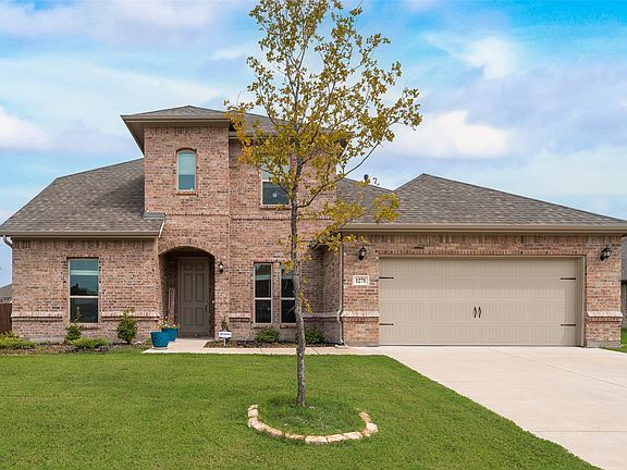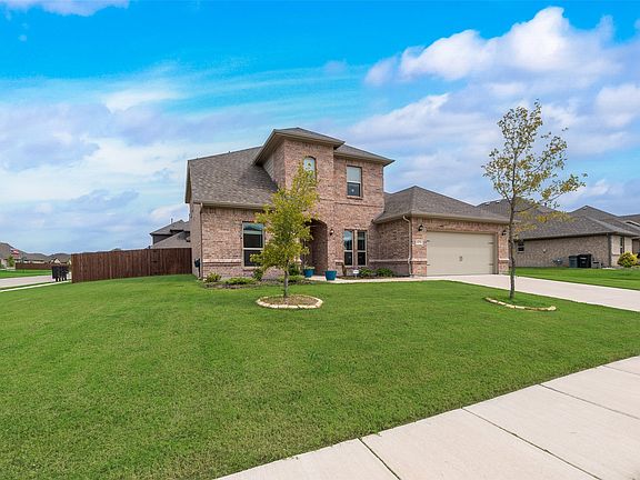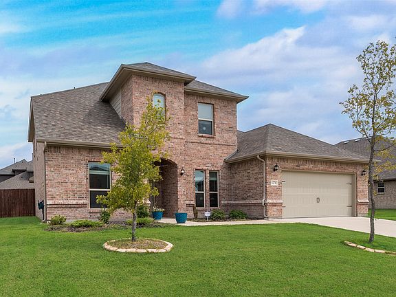 Gorgeous house built by Impression Homes in 2023. This 2-story Thornbury plan has 5 bedrooms, 3 full baths, 2 car garage with brick and stone elevation in Fox Hollow. Perfect for entertaining with ceramic wood-look-tile throughout the main living areas, California kitchen with a lot of cabinets. The primary suite has 2 large walk-in closets, dual vanity sinks, garden tub and separate shower. This home also includes a study with French doors and a game room! It is loaded with extra storage, covered front and back porches, and so much more.