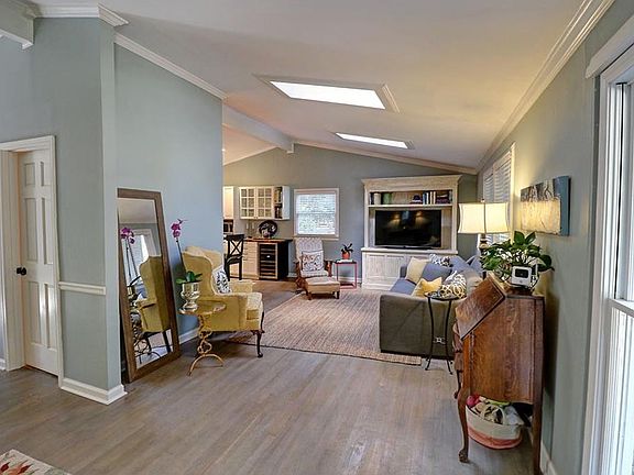 Amazing renovated bungalow nestled on quiet street in sought after Brookhaven.Perfect blend of mid-century architecture & charming cottage style . Sunlit open floorplan. Newly renovated Kitchen with WOW factor! Custom cabinetry, shiplap, granite counters, SS appliances, breakfast nook w/wooden counters, and bar. Great Rm w/beamed ceiling flows into both Dining Rm & Kitchen. Designer gray stained hardwoods. Living space extends into backyard oasis multiple entertaining areas, privacy fence, integrated gardens. Basement w/laundry rm, workshop, storage & int/ext entrance.