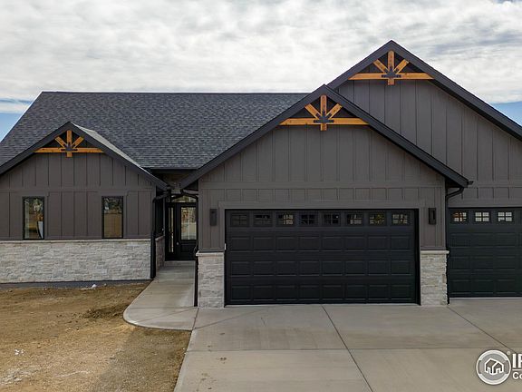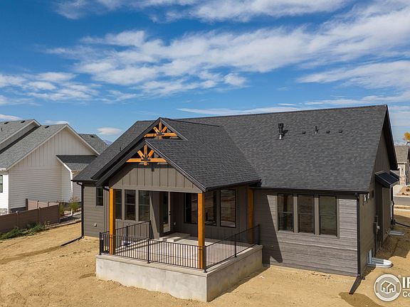 MOVE IN READY! Nestled in Harvest Ridge, Berthoud, Colorado, this custom new build awaits its perfect owner. The home seamlessly blends modern luxury with rustic charm, centered around a great room featuring a stunning stone fireplace with a reclaimed wood mantel. Real wood beams adorn the ceiling, creating a cozy mountain/modern atmosphere. Exquisite Tharp cabinets throughout showcase exceptional craftsmanship, complemented by elegant quartz counter tops in the kitchen and bathrooms. A covered back patio offers seamless indoor-outdoor living. The finished basement is an entertainers dream, boasting a large gathering area, appropriate sized bar, two additional bedrooms, and a full bath. Perfect for hosting parties or accommodating guests. A three-car garage provides ample storage for vehicles and outdoor gear, ideal for an active Colorado lifestyle and near by trail. This warm, inviting haven reflects the beauty of Berthoud. With its custom details and perfect blend of comfort and style, this home offers a unique opportunity to embrace Colorado living at its finest. Home is complete and additional photos will be added soon.