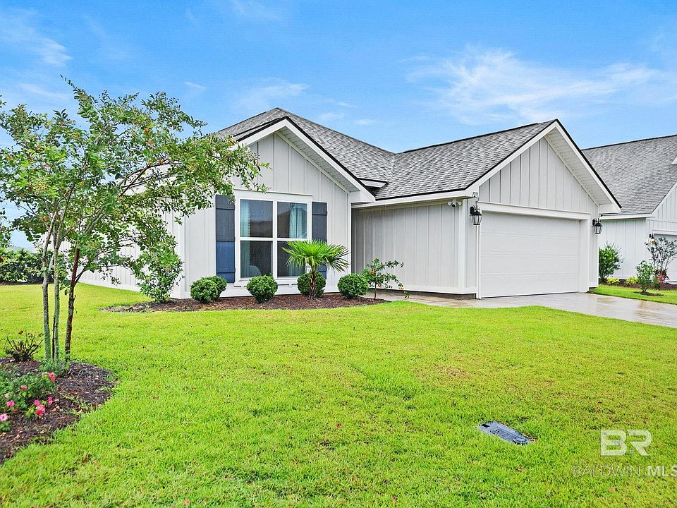 Beautiful Truland Home just minutes from the White Sandy Beaches of Gulf Shores. This spacious 4 Bedroom, 3 Bath Home is located on a nice Corner Lot in Rosewood Subdivision with Gorgeous View of Neighborhood Pool. All Appliances convey. This home was the Subdivision Model Home and the garage is finished with drywall, trim, and paint, and AC unit. This home features 10 foot ceilings in the main living area. 4th Bedroom has en-suite bath which makes it a perfect private suite for your guests. Kitchen has granite counters and stainless steel sink. Community pool has 6"Baja Tanning Shelf. Home has Ring Doorbell and Smart Deadbolt. Smart Hub compatible with Alexa. Established yard with irrigation system. Buyer to verify all information during due diligence.