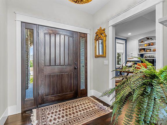 This elegant 2-story home has been gently lived in and offers all the amenities you would expect in new construction. The light filled living room welcomes you with wide plank wood floors, soaring coffered ceilings, soothing wall color and white trim. Those wood floors run throughout the main floor, and there are built-ins everywhere! A well-planned kitchen boasts custom cabinets with rollouts everyway, professional level stainless appliances, including a warming drawer, and a butler's pantry with floor to ceiling built in cabinetry and a pocket door. An airy family room with fireplace and bar adjoins the kitchen and accesses a maintenance free deck with an outdoor gas fireplace. There's also a main floor primary bedroom with a fireplace and adjoining luxury bath and closet plus laundry facilities. You'll find a dedicated office space just off the entry foyer. The second floor presents 3 large bedrooms, and 2 full baths, both elegantly and timelessly tiled. A large craft room/sewing room adjoins a third bedroom. The upper level also contains a 10x8 laundry room with built in cabinetry. Moving to the lower level you will find a fifth bedroom with walk-in closet and another gorgeous bath, BIG family room, built in bar and light filled workout room that is multi-purpose. The .53-acre lot has a sprinkler system, and an attached 3 car garage will accommodate you and the family. Located on a quiet cul-de-sac, this elegant property is offered for sale at $1,090,000.