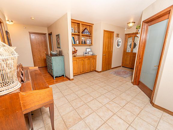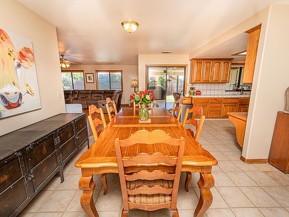 This move in ready NE Tulare home is sure to please offering 3 bedrooms/2 bath + bonus room which can be used as a 4th bedroom, office, den, or anything you like. The living area is open with the kitchen looking out to the dining and living room. The living room is very inviting with built in shelves and a brick fireplace to enjoy in the winter months. The home has been upgraded with a new HVAC system in 2021 and also includes a ring doorbell, cameras and option of high-speed fiber internet. The home features a split floorplan with the master opposite of the guest bedrooms. The master bedroom is spacious with an en suite, large walk in closet and newer laminate flooring. The guest bedrooms are also spacious, and both have walk in closets. The home features indoor laundry equipped with a washer/dryer to stay. Step out back and enjoy the covered patio with multiple ceiling fans and enjoy the serene backyard. The home also comes with extra storage cabinets in the garage and on the back patio along with a shed. All this and close to shopping, schools and freeway.