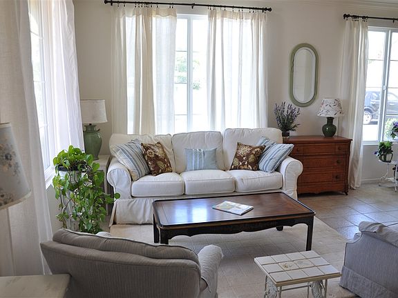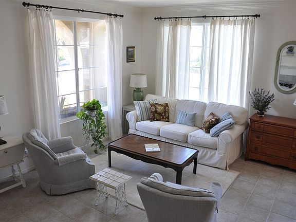 Lovely, light, bright, west facing, end unit townhome in Otay Ranch, just a short walk to the new rapid transit system. Newly remodeled kitchen with quartz counters, crown molding throughout downstairs, designer paint and upgraded flooring. Beautifully maintained by one owner, it has a small front yard with a garden, an attached one car garage plus one assigned, a large master with walk in closet, another bedroom upstairs and a den. It's currently furnished including w/d. Some furniture may be included.