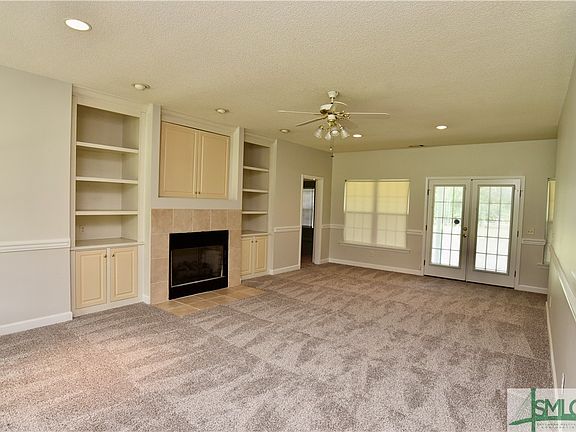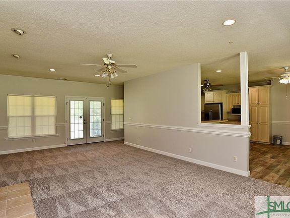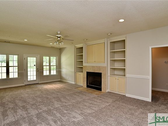 Ranch style home on a five-acre lot, completely fenced around the perimeter of the property. Bring your horses and pets. There are two pastures, and a large dog run, all separately fenced. There is a 20X20 run-in shelter pole barn and a hay barn in the back pasture. This home has a front porch with double door entry into the open living room with cozy fireplace, built in TV and bookshelves. Huge kitchen with loads of cabinetry including open shelving, glass doors, custom vent hood over stove and built-in pantry, eating area with bar. Split bedroom floor plan. Master suite with tray ceiling, large walk in closet, and double vanities, shower, and separate tub in master bath. Two large bedrooms that share a full bathroom. Spacious laundry room with cabinets. Ceiling fans in every room. New paint and carpeting. Kitchen, laundry, and bathrooms have ceramic tile. Watch the horses from the back covered patio. No HOA! 30 minutes to Georgia Southern in Statesboro, 24 minutes to Pooler.
