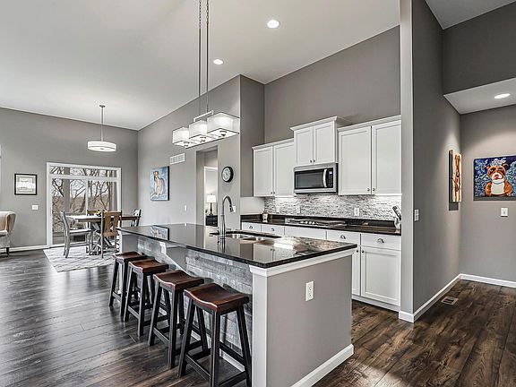 Stunning Ranch home boasts an open floor plan with 3 Beds, 2 Baths, tandem 3-car garage, and 2,400+ Sqft of living space, including the Lower Level! Highlights: newer K-guard gutters (2021), Wi-Fi smart lawn irrigation system, finished/insulated garage (2021), hard surfaced flooring throughout Main Floor, formal Dining Room, Family Room with gas fireplace and 12’ ceilings opens to eat-in Kitchen with granite countertops, 42” cabinetry, recessed lighting, center island, custom backsplash, stainless steel appliances, large pantry, and Breakfast Room, Main Floor Laundry, Master Suite with luxurious Bath and walk-in closet, plus an updated guest Bath, and a partially finished walkout Lower Level with large Rec Room and tons of storage space! Relax outside on the composite deck with screened-in room and a motorized UV blocker curtain, or on the extended back patio (2020) with a motorized awning (2021), and enjoy the premium .64-acre lot with flat fenced-in space that backs to the woods!