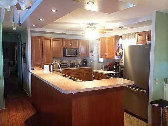 GORGEOUS 2/2 home in active 55 plus community in Daytona Beach. This home boasts of a spacious open floor plan perfect for entertaining and a new gourmet kitchen that offers a breakfast bar and stainless steel appliances. New A/C in 2012 and roof was serviced and sealed in 2014. Just a short walk to the community clubhouse and the low lot rent covers it all...The water, sewer, trash, lawn care and cable. Available for long term rental $900/month or more money for 6 months. Over 700 homes available at https://www.fourstarhomes.com