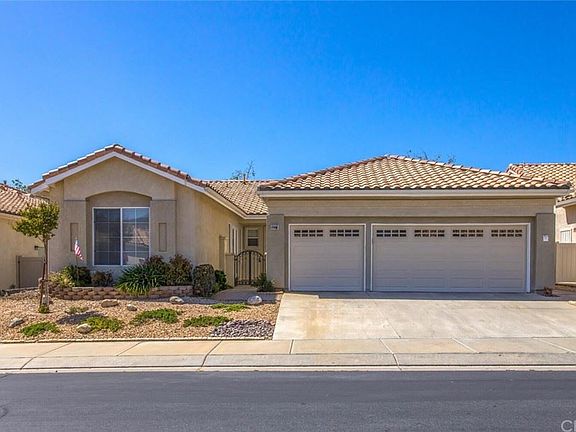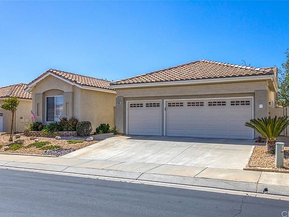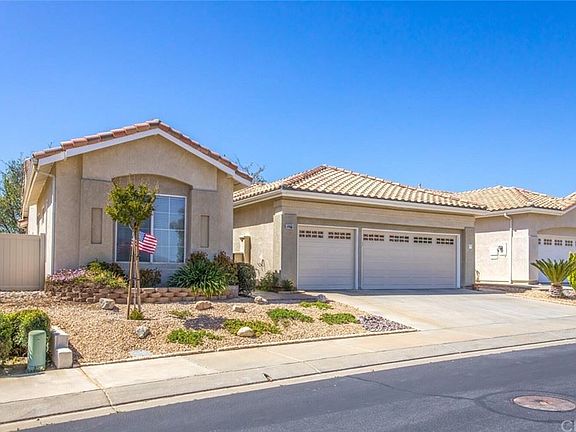 Rarely On the Market - "Wisteria" On the Golf Course (4th tee) with Mountain Views!!! Largest Single Story model and the only model with a full 3-Car Garage in Sun Lakes. Freshly Painted inside, Brand New high-quality Carpet and Ceramic Tiled Floors in the full Bathrooms and New Tile in Front Courtyard. Some of the Upgrades include: Ceiling Fans in Family Room, Bedrooms and Den/Office, French Doors from Den/Office leading to Front Courtyard, Family Room has Gas Fireplace with Electric Starter and Custom Wood Mantle, Floor-to-Ceiling Beveled Mirrors in Dining Room, Organized Master Bedroom Closet, New Glass and Screen at Master Bedroom Slider, Patio Cover in Back Yard, New Water Heater, New Kitchen Faucet, Built-In Cabinets and Sink in Garage and New Sprinkler System. This model Features 10 foot Coffered Ceilings, Bull-Nosed Corners, 6-Panel Interior Doors, Island Kitchen, Double-Oven, Interior Individual Laundry Room with Sink and Much More! Sun Lakes Country Club is an Active 55 Plus Community with a 24-Hour Guard Gated Entrance, 2 18-Hole Golf Courses, Driving Range, Putting Greens, 3 Clubhouses (each has Pool/Spa with one indoors), 3 Gyms, 2 Restauraunts, Tennis Courts, Pickle Ball/Paddle Tennis Courts, Bocce Courts, Billiard Room, Library, Veranda, Full Bar, Lounge, Ball Room, Craft Room with Kiln and over 80 Clubs to join (i.e. Gardening, Chorale, Book Club, Cooking, Quilting, Sewing, Painting and Creative Writing just to name a few). HOA Dues include Cable TV and Internet. There are so many activities available for those who are interested. Close to Palm Springs and Casinos. LIVING IN SUN LAKES IS TRULY LIKE LIVING IN A RESORT!!!