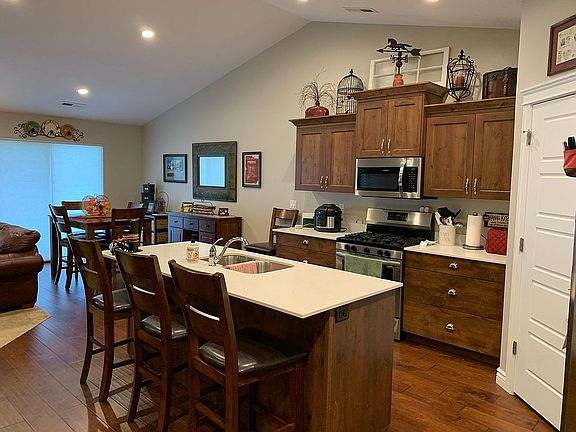 This home is all on one level with NO steps. It includes a small, covered back patio with no homes behind. And the added bonus storage room, just off the kitchen, is 36 square foot in size, complete with deep, wide shelves. There is an additional, unfinished storage room, with electricity, above the garage, accessible by a drop down ladder in the garage. There are also two full bathrooms. The home is situated in West Layton, on the south end of a triplex, facing west, looking out towards the Oquirrh Mountains. The HOA provides complete landscaping and snow removal as warranted.