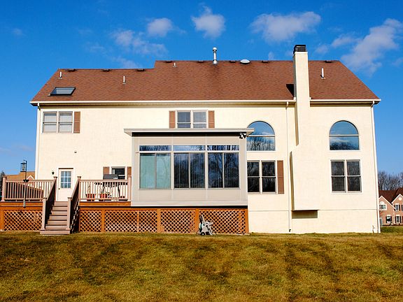 Please watch the attached HD Video Your! Welcome to the community of Dublin Estates where you will find one beautiful home after another. Drive up to be greeted by the wonderful curb appeal of this home and take note to the updated stucco exterior. If you desire a bright open and airy home, this is it! Enter to find the gleaming hardwood floors that flow throughout the first floor. To your left you have the perfect size living room and to you~re right you have an over-sized dining room with chair and crown molding. The 2 story foyer boasts a magnificent a center staircase that leads up to a floating walkway. If you enjoy entertaining, you are going to love your two-story family room set with a wall of windows allowing the natural sunlight to pour in. There~s also a gas fireplace, ready to warm your souls on cool winter nights. The family room flows into a tiled and updated eat-in kitchen area with granite counter tops, an island with bar stool seating for 6, rich wood cabinetry, matching appliances, 2 pantries and a gas cook top. The breakfast area is over-sized and leads to a set of sliders to your 4 season-tiled sun room with its 3 walls of windows and vaulted ceiling. You will notice that this room seldom needs heat in the winter due to its wonderful southern exposure and in the warmer months you could open up the nine windows and the slider to Allow the cool breezes to drift in. The first floor continues on with a nice size office or guest bedroom, a well appointed half bath and a large laundry room with sink, with outside access.Stroll up one of the two sets of staircases to your floating walkway and take note to the wonderful view of the family room below. On this level you will find. Four oversize bedrooms 3 with en suites. The master bedroom suite is set with a vaulted ceiling, a large bedroom area plus an open reading or exercise area. There are also two over-sized walk-in closet as well as a wall closet. The master bathroom is completely tiled and sports double sinks, a stall shower and a deep set soaking tub positioned in the corner with two sets of windows and a skylight.If you are in need of more then the 3900+ square foot that you will find on the first and second floors, stroll down to the fully finished basement with what will appear to be endless additional space. Here you will find a kitchenette area that opens up into an L shaped family area with enough room for all of your entertaining equipment. In addition there are two separate rooms which can be used as bedrooms offices and/or a home theater. In addition to the ample storage space there is also your fourth full bathroom! This lower level has all the makings of a fully functional In-law suite. If you enjoy outdoor activities you are going to revel in your over-sized Trex deck and park like setting of a backyard. This is the perfect place to entertain your friends and family at fair weather get togethers.All the wonders of this home and community are just literally a stroll from parks, jogging and biking trails, shopping centers and fantastic eateries, hospitals and medical centers and all major thorough fare~s including very quick access to the Pennsylvania Turnpike leading you to Philadelphia, the Philadelphia international Airport, New York city, and beyond. Schedule your personal tour today.Honorable mentions include high-efficiency Newark ass mechanicals, including two zones and two separate HVAC systems, home stereo system and an over-sized three-car garage with additional outdoor parking availability.
