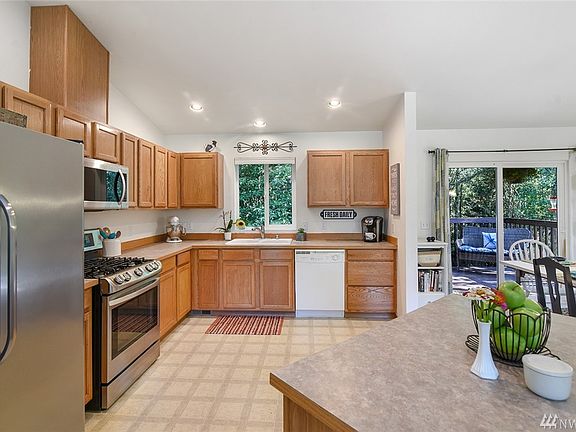 This great South Kitsap home on a level lot offers ample room inside and out! Upstairs enjoy an open kitchen/dining/living ideal for entertaining while the master with attached bath, two additional beds and full bath provide a relaxing place for all. Downstairs discover a family room with cozy fireplace, den/office plus a fourth bedroom and 3/4 bath. Situated on 1.11 acres with deck, firepit and garden beds, minutes from shopping and the Southworth ferry, this delight has it all - don't miss it!