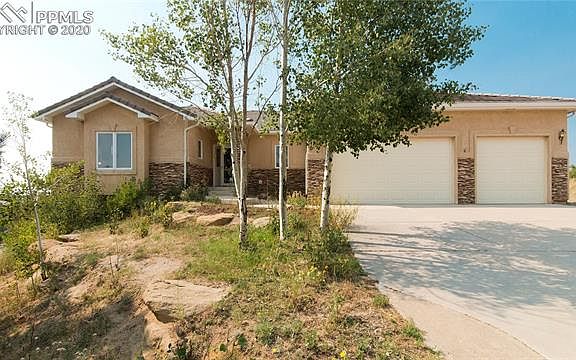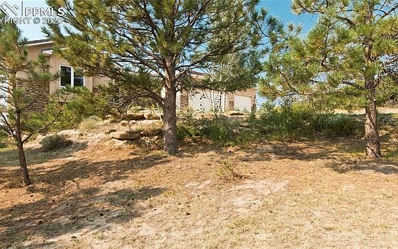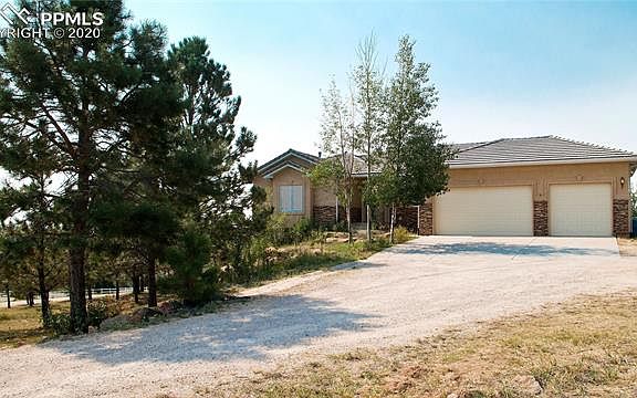 Imagine a quality custom home on 5 PRIVATE ACRES in an exclusive 26 home upscale community close to I-25, Hwy 83, and Powers. Natural landscaping and beauty surround you. Now, enter the home and experience 360 DEGREE VIEWS from most every window. PIKES PEAK sun sets and sun rises are magnificent. This WALK OUT 4090 sq. ft. RAISED RANCH is fully finished but with ample storage. It has 4 bedrooms and 3 baths. The MAIN LEVEL has a large LIVING/GREAT ROOM with a SEE THROUGH GAS FIREPLACE to the BREAKFAST ROOM, an ample kitchen with lots of cabinetry and a pantry, an OFFICE/BEDROOM (not counted as a bedroom in the MLS) with a FULL BATH adjoining, a LAUNDRY ROOM, a FORMAL DINING ROOM, a magnificent OVERSIZED SUNROOM (not counted in the sq. ft.), a WALK OUT MASTER SUITE with adjoining 5 PIECE BATH with double vanity, GAS FIREPLACE, and WALK IN CLOSET. This is ONE LEVEL LIVING at its best. The WALK OUT BASEMENT has the same sq. ft. as the main level (2045 sq. ft.). It has a huge FAMILY ROOM with a river stone facade GAS FIREPLACE and WET BAR, and it walks out to a covered patio. There are 3 bedrooms, all with WALK IN CLOSETS and a DOUBLE VANITY 3/4 bath. One bedroom is large enough to serve as a 2ND MASTER OR CRAFT ROOM. Utilities are well and septic, gas and electric. The well permit is DOMESTIC, allows for 4 horses, and is metered. Students attend award winning D20 School District and Discovery Canyon for Elementary, Middle, and High School. No need to imagine any further. Come visit this home. Sip your coffee in the morning as you watch the sun rise from the tiled and SPACIOUS SUNROOM, then come back to watch it set in the evening. The radiant heat will keep you warm and it helps warm the house as well. This home caters to many different lifestyles. We hope it will fit yours. Remember it is located less than a mile from Flying Horse Country Club, 5 minutes to I-25, 5 minutes to Powers, and just 10 minutes to The Shops at Briargate. The home is vacant and move in ready.