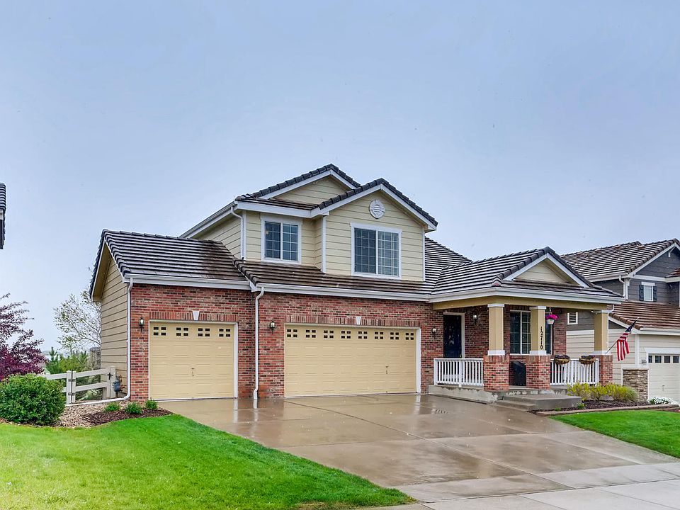 Immaculate home, well maintained, open floor plan in Anthology. Vaulted entry, study with french doors with custom built-ins. Formal diningroom with bay window. Family room with custom built-in bookcase and gas log fireplace, open to kitchen. Granite island and counter tops,cherry stained custom cabinets and black appliances. Pantry and broom closet in laundry room. Front porch and back deck just sanded andrepainted. Newer exterior and interior top 2 floors painted and new carpet and wood floors sanded and re-stained. Master and 2 beds up withopen loft. Gorgeous landscaping, backing to open space, close to the Cherry Creek Trail. No neighbors behind you! Professionally finished walk-out basement withgenerous sized family room, craft or 5th bedroom, bath, new bedroom. Close to Parker's shoppingrestaurants, rec center, hospital and E-470.
