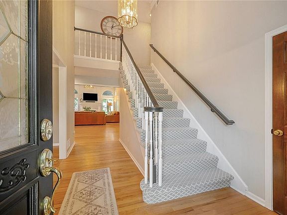 BEAUTIFULLY UPDATED 1.5 Story home in Waterford! Inviting two-story entry with stunning new light hardwood floors. Expansive great room, with a gorgeous 14' coffered ceiling, beautiful fireplace, and plantation shutters. Open kitchen and breakfast area/hearth room has granite countertops, center island, gas range, pantry, vaulted ceiling with skylights and a wall of windows offering views of the back deck and covered patio. Convenient main floor primary suite with an updated bath, spacious second bedroom, and a separate office. Two large bedrooms upstairs each with private baths and walk-in closets. Entertain in the finished walk-out lower level featuring a spacious rec room with a fireplace, great bar area for casual gatherings, a 5th non-conforming bedroom, and full bath. Wonderful outdoor space including a covered patio, large deck, plus a second patio off the lower level. Three car side entry garage, new roof, sprinkler system, and so much more! Great location in Blue Valley School District!