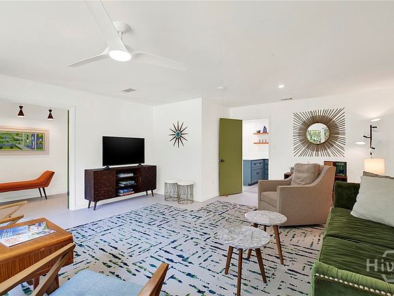 A Palm Springs–inspired retreat in the heart of Savannah. Nestled along the La Vida Golf Course in the desirable Berkshire West enclave of Windsor Forest, this single-level mid-century modern masterpiece has been fully reimagined for elevated living. Offering 3 bedrooms and 2 renovated bathrooms, the home showcases bespoke finishes, including custom wall panel at entry, designer penny tile flooring, sleek new baths, and mid century modern elements in the bedrooms.