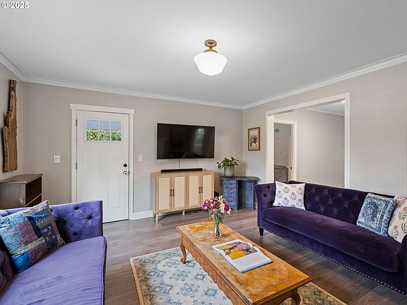 Nestled in the heart of Mill Park on nearly a quarter acre, 12710 SE Lincoln is a beautifully updated 1940s charmer that seamlessly blends vintage character with modern comforts. Thoughtfully designed, this 4-bedroom home features two bedrooms upstairs and two on the main floor, offering flexibility for any lifestyle. The spacious full bath boasts double sinks and a luxurious deep soaker tub, perfect for unwinding after a long day. Fully renovated, this home showcases newer laminate flooring, fresh carpet, and paint, while thoughtfully preserving its original charm with restored built-ins and gracefully arched doorways. The ornamental fireplace adds warmth and character, ready to be adorned with your personal style. The farmhouse-inspired kitchen features white shaker-style cabinets, matte black hardware, stainless steel appliances, and quartz countertops, while floating shelves above a subway-tiled backsplash provide both function and charm. And the darling arched detail above the sink just might make doing dishes a little more enjoyable! Just off the kitchen, a sun-drenched mud-room offers the perfect spot for all the plants. A dedicated laundry space with a utility sink adds convenience. Step outside into a private, fully fenced backyard retreat, where flowering trees and lush bushes create natural privacy. A majestic old maple tree provides shade and seasonal beauty, while a grape arbor over the back deck sets the perfect scene for relaxing or entertaining. The detached two-car garage offers additional storage and functionality, and the long driveway, secured by cedar gate, keeps vehicles tucked away. ADU potential! With major system updates in 2020, including a new furnace, electrical panel, and water supply line, this home ensures peace of mind for years to come. A brand-new roof in 2024, complete with a transferable warranty, adds even more value to this stunning property. Come check out all that Mill Park has to offer.