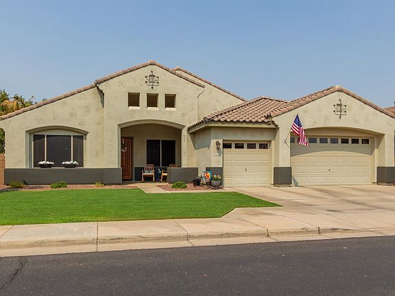 The search is over! This is the one with the updates & features you've been looking for. Escape the heat in the pool featuring a waterfall & easily removable safety fence. Built in BBQ features drop in cooler, refrigerator, high end grill & bar seating. Grass in the front & back with plenty of space to play & entertain. 2 orange trees, lime tree, pomegranate tree & two large 8x4 raised garden beds. The best part about the backyard though is NO NEIGHBORS BEHIND! Enjoy the views and plenty of privacy. All this & we haven't even got to the interior! Did I mention the HVAC system was replaced in July 2019! ($19,000). The kitchen/living room is the heart of the home with great views of the pool, 12' vaulted ceilings, 12' island with undermount sink & touchless faucet, subway tile backsplash &