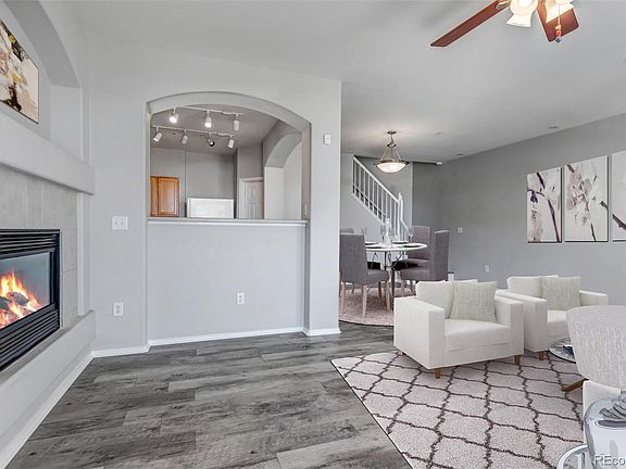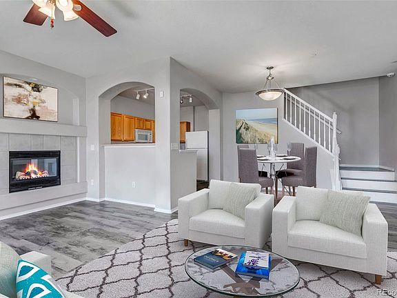 BEAUTIFUL CONDO IN THE HEART OF THORNTON! The minute you walk in you will fall in love with the gleaming new laminate wood floors throughout. Bright and sunny open floor plan. Kitchen features plenty of cabinet and counter space. Spacious dining room that opens up to the cozy family room with a gas fireplace. Enjoy your summer cookouts or evening wine on your covered balcony which features a storage closet. Upstairs features a master suite with a walk-in closet and vaulted ceilings. Additional bedroom and full bathroom. The laundry room is conveniently located next to both bedrooms. New roof, newer paint, newer carpet, newer lighting fixtures. 1 car detached garage AND 1 reserved parking spot. You'll love all the off street parking this unit has to offer in addition to the guest parking. Wonderful HOA amenities including a fitness center, pool & clubhouse perfect for those summer pool parties. An easy commute to Downtown Denver via the newer East Lake RTD N line. Close to schools, parks, trails, restaurants and more. Don't miss out on owning this wonderful well cared for condo!!