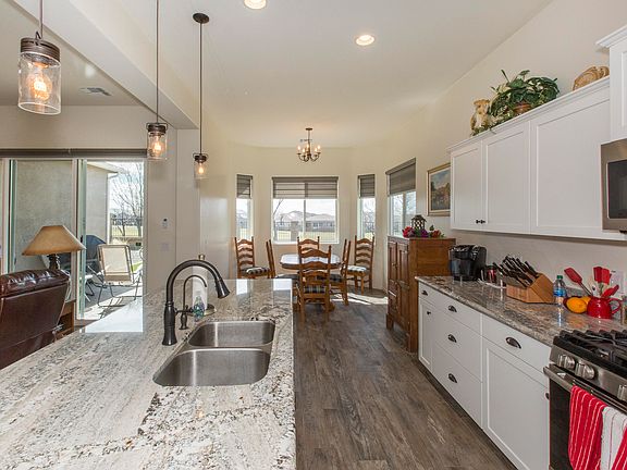 - Interior Features: Ceiling Fan(s), Eat-in Kitchen, Kitchen Island, Live on One Level, Master On Main, Raised Ceilings 9+ft, Smoke Detector(s), Walk-In Closet(s), Wash/Dry Connection, Counters-Granite, Formal Dining Area, Garage Door Opener(s)
