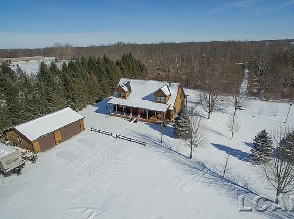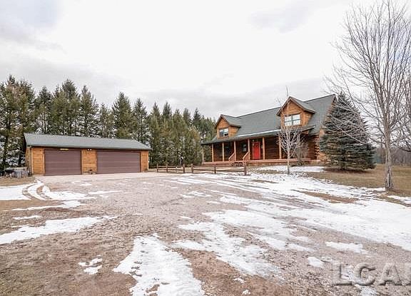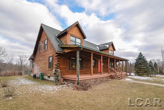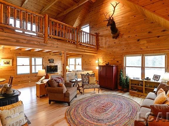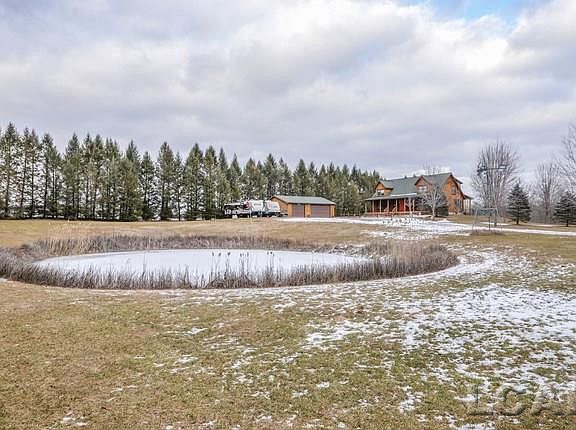 Back to Nature with this Gorgeous 2,700 SF Log Home on 12.65 Acres! Trails, creek, pond, woods! Beautifully constructed 4-bedroom, 2 full and 2 half bath home on the private setting you've been looking for. Great living spaces with living, family, loft, breakfast/sitting, dining, and also finished recreation room in basement. Kitchen with Quality KraftMaid Honey Birch cabinets, pantry, bar seating, and appliances included. Main floor master bedroom with new master bath (2016) with tile shower and claw foot tub. Enjoy the land with front and back porches, fenced area in backyard, more privacy with wetlands at back of property. Nicely updated with new Mission Maple flooring (Oct 2017), new dishwasher and fridge (Nov 2017), newer washer/elect dryer, windows and roof new within the last 10 years. Additional features include main floor laundry room, 3+ car garage, natural gas, wired for generator, Infrared Sauna negotiable. HSA Home warranty included. Close to town, Bridgewater Township!