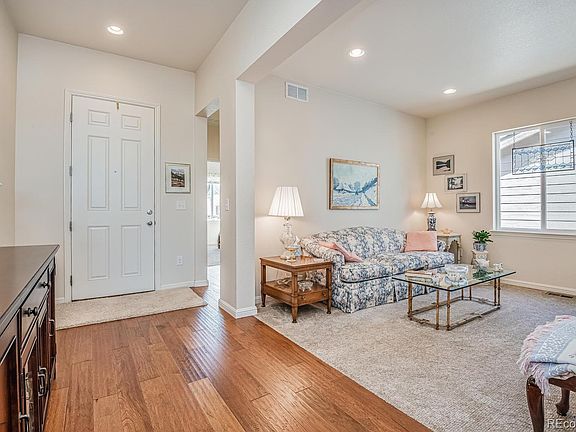 Welcome to Wonderful highly sought after Skyestone 55+ Active Adult Community near Flatirons Mall! Please come and see this lovely Boulder Model in the heart of the neighborhood. Immaculate ranch style home that employs a wide open floor plan, 2 bedrooms with 2 full baths plus multipurpose room. Georgeous Engineered Walnut Hardwood floors flow through the main living areas which give this home a very large open feel. All stainless appliances, beautiful granite countertops and large island with sitting space to enjoy your breakfast. With a East facing private covered deck, you can enjoy beautiful Colorado sunrises and sunsets. Spectacular mountain views from your front porch! Upgraded tile in both bathrooms and an oversized shower in the Master bathroom. Great mud room coming in from the garage with sitting bench! Pet Free. Full, unfinished basement with several windows give it loads of natural sunlight.You are just steps away from the Community Center and a plethera of miles upon miles of trails to walk, bike and hike. Swim, work out in the fitness area, take classes, play some Pickle Ball to your hearts content. Enjoy concerts, events, cooking classes and a variety of other special programs at the georgeous Skyestone Rec center! Motivated Seller! Bring us an Offer!