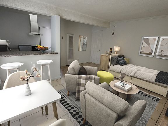 This thoughtfully designed studio features tiled flooring throughout and an open living area that's easy to make your own. The versatile layout allows you to create distinct living and sleeping spaces, with plenty of natural light enhancing the inviting atmosphere.