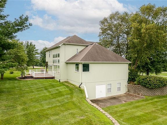 Searching for acreage in a fantastic community? Welcome to your peaceful country retreat! This well-maintained one-owner home is simply beautiful! Tucked away in the sought-after Holmes Creek Hills Community near Kearney, MO, this property offers spacious living with easy access to major highways and shopping. The entryway welcomes you with real hardwood floors, tall ceilings, newer paint, inviting staircase, and adjacent formal dining room and half bathroom. The spacious living room offers vaulted ceilings, floor-to-ceiling windows, and gas fireplace with custom mantle. Large eat-in kitchen with island, custom oak cabinets, built-in desk with easy access to the large deck complete with established landscaping and scenic views of the property. The first-floor laundry with custom cabinets and storage adds extra convenience to this already amazing home. Second level has 3 spacious bedrooms all with ceiling fans and carpeting as well as 2 full-sized bathrooms. There is room to grow in a huge unfinished walkout basement.