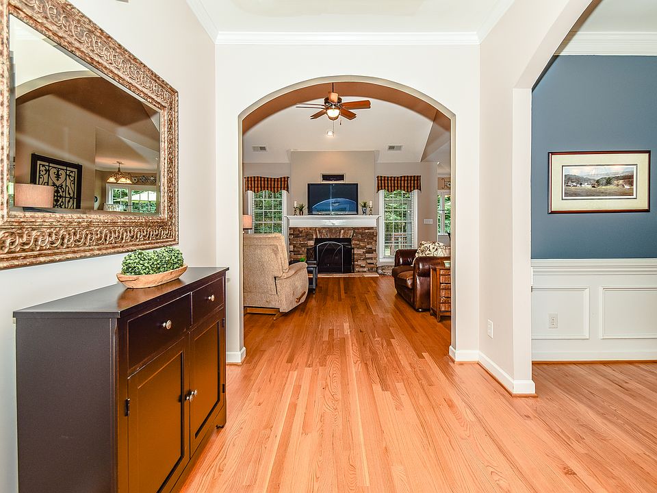 RARE FIND! This picturesque RANCH home with southern front porch is surrounded by 1.14 acres of privacy. This 3 bedroom, 2.5 bathroom home features an open floor plan, hardwoods in main living areas, private master suite, bonus room over the garage with walk-in attic storage, and plenty of outdoor entertaining space! The entry hall leads to the formal dining room and family room. Large windows illuminate the dining room and provide views of the rocking chair front porch. The family room features stone fireplace, vaulted ceiling and hardwood floors, and is pre-wired for surround sound. The open floor plan places kitchen in the heart of this home. A charming breakfast room with beadboard wall finishing has access to the back deck. Private master suite is tucked away on one end of the house while other bedrooms can be found on the other side. Suite includes small home office, renovated master bath and large walk in closet. Spacious flat backyard features both a screened porch and open deck for entertaining guests. Garden beds can be used to grow fresh fruits and veggies for next year! Storage building provides storage space for outdoor equipment and tools.