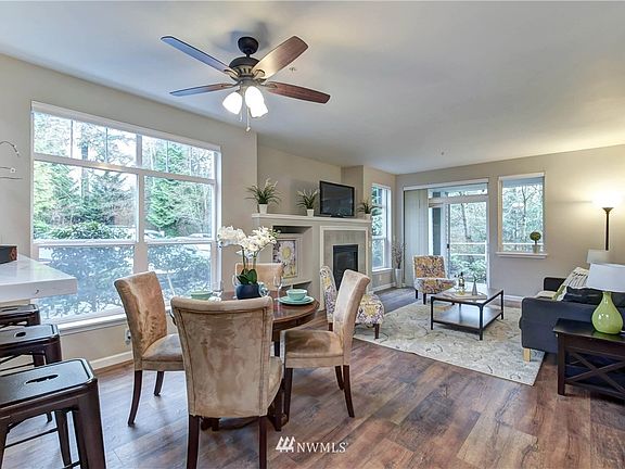 Rare ground floor end unit with an attached garage, and secluded greenbelt along the rear of the home. Fully remodeled with new quartz counters, laminate flooring, carpet, paint, faucets, fixtures, and black stainless LG appliances. This spacious home has 10' ceilings, master suite with 2 closets including a walk in, a chefs kitchen with eating bar, and toasty gas fireplace. Welcome to the Woodlands.