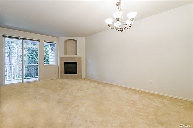 Affordable & private your new home awaits tucked back in the sought-out community of Woodlands! This 2 bed/2 bath w/reserved covered parking is located in the back + borders a green belt. Covered entry invites into a open concept living/dining room w/high ceilings. Bright white kitchen w/ample storage + pantry. New carpet & wood laminate. Large master bedroom backs to greenbelt w/walk in closet, 2nd closet, private bath w/dual sinks & walk-in shower. Second bedroom is located next to full bath. Neutral colors throughout. Cozy gas fireplace. Private balcony w/storage. Super convenient! Near Boeing, Lake Stickney + off-leash dog park. Pet-friendly, no rental cap + FHA approved makes this a first-time home buyer dream or great investment.