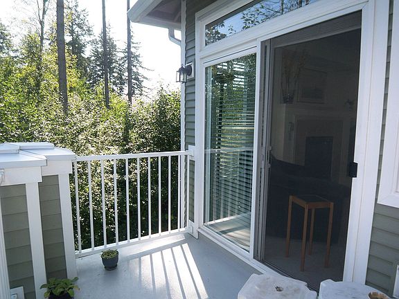 Top floor, sunny end unit overlooking trees, eagles, greenbelt & pond. Open floor plan great room living room/dining room w/gas fireplace. View kitchen w/white cupboards & extra counters, tile breakfast bar & instant hot water opens to dining area. Separate master suite w/cathedral ceiling, walk-in closet & private 3/4 bath. 2 additional spacious bedrooms share full bath. Separate laundry room. All appliances stay. Individual one car garage. Additional visitor parkingg. Low $94/mo homeowner dues. Minutes to Boeing, I-5 & shops.
