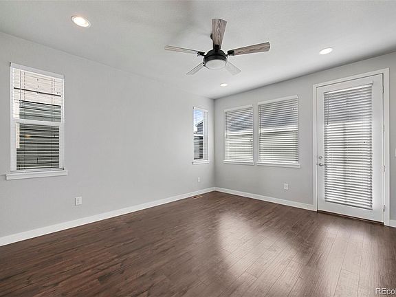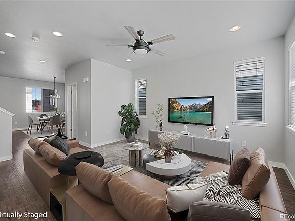 This beautifully refreshed three-bedroom, three-bath DETACHED townhome offers the perfect blend of modern upgrades, thoughtful details, and unbeatable convenience. Located near Anschutz Medical Campus, Denver International Airport, & I-25, this home lives like a single family residence with the convenience of a lock-and-leave lifestyle. Step inside to enjoy the fresh ambiance of brand-new paint throughout and plush new carpeting, creating a cozy and inviting feel. The lower level is thoughtfully designed for functionality and convenience. The attached two-car garage provides secure parking and direct access to a laundry (with included full-sized Samsung washer/dryer) mudroom, a coat closet, and a fenced side yard—perfect for pets or outdoor relaxation. The open-concept second floor is designed for entertaining, featuring a spacious living room that opens to a private balcony—perfect for grilling or enjoying sunsets. The stylish kitchen boasts granite countertops, sleek white cabinets, a luxury oversized refrigerator, and stainless steel appliances, including a four-burner gas range. A large island with counter seating and under-cabinet lighting adds both function and style. The upper level is a private retreat, where the primary suite offers a walk-in closet, ceiling fan, and a spa-like ensuite with dual sinks, a tiled shower with a glass door, and a shaving bench. Two additional bedrooms share a spacious bathroom with a shower/tub combo.. Stay secure and connected with the Smart Security System and smart thermostat, indoor camera, and video doorbell, offering peace of mind and modern ease. Additional features include remote-controlled ceiling fans, upgraded lighting, and HOA-maintained grounds, making this move-in ready! Packed with thoughtful touches, this townhome combines comfort, style, and practicality. Don’t miss out—schedule your showing today and make this stunning property your new home!