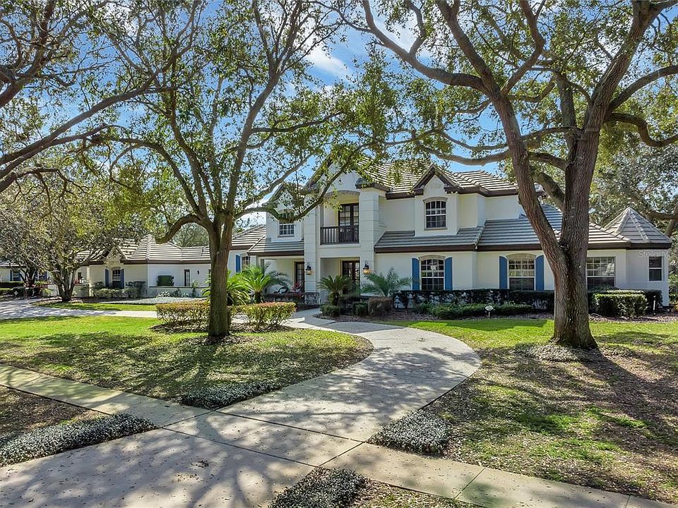 This magnificent acre estate is a must see! Coupled with the stately 4,705sqft FIVE bedroom and FOUR bath residence sits a true unicorn: a SINGLE-STORY 1BR/1.5BA (1,107sqft) guest house with private entrance, FULL kitchen, laundry, and dedicated 2 car air-conditioned garage. Through the guarded gates of Waterford Pointe, you will be impressed as you approach this expansive and unique property. The circular driveway and portico enhance the spectacular curb appeal as well as the mature landscape, grand double doors, and second story covered terrace. Upon entrance into the dramatic foyer, you will immediately appreciate the high ceilings, natural light, and outdoor living opportunities. The main floor offers a GORGEOUS kitchen and family room, breakfast nook, formal living and dining room, primary owner wing, 2 additional bedrooms (that could also be used as office space), 3 FULL bathrooms and spacious laundry room. This property showcases the best of Florida’s indoor-outdoor living as it includes a covered lanai with outdoor kitchen that overlooks the fully screened pool, spa, and play-pool as well as an additional 2 private patios. The second story features an overlook, generous loft with custom built-ins, 2 additional bedrooms and full bathroom. Further qualities and recent updates to this striking home include finished walk-in closets, wood-look plank tile, cabinetry, several appliances and light fixtures, countertops and more. This tucked away yet connected community includes a 24-hour guarded gate, boat dock with access to the skiable Lake Roberts, playground, tennis courts, and clubhouse. Opportunities to live in this special place don’t come around often – schedule your private showing today! Video & Matterport available!