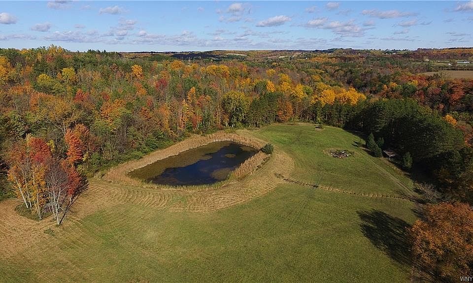 JUST EAST of EAST AURORA VILLAGE in the Town of WALES--Historic Camp Aloha 12713 Big Tree Rd. Former Camp Fires Girls Camp. 103 acres w 13 cabins (most w/ electric & water), 5 shelters (some useable/some in need of rehab), large lodge w commercial kitchen, a dwelling (rented at 1k/mo.), pool. Water from 3 drilled wells (new pumps 2017) and gas throughout. Extensive gravel road system and trails. Parcel includes a large section of Stoney Bottom Creek. Giant dual lane toboggan hill. Pond. Suitable for single family estate, camp ground or church/corporate functions. Convenient proximity to 20A exit of Rt. 400 and Village of East Aurora.
