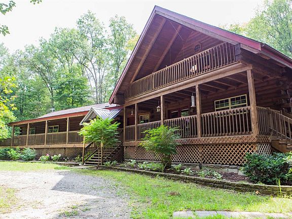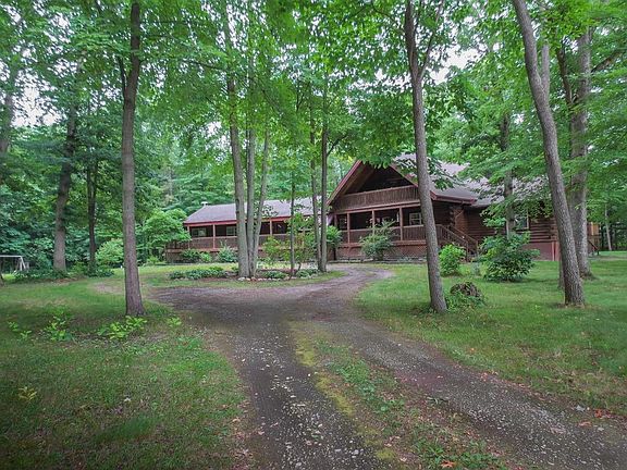 Rare Opportunity to Own this Six Bedroom, 4 Bath Log Cabin on Private & Wooded 7.09 Acre Setting. This Log Cabin is Set up as Two Units that Can be Duplex or Single Family. First Unit has Stunning Great Room with Soaring Cathedral Ceiling,Exposed Beams,Stone Fireplace,Two Skylights & Two Doorwalls Leading to Deck Overlooking Heavily Wooded & Pastoral Backyard. Additional Features of First Unit include Dramatic Loft Master Bedroom overlooking Great Room, Full Bath w/Skylight & Outside Balcony with Swing,Two Additional First Floor Bedrooms,Open Kitchen & Dining Room & First Floor Laundry. Second Unit of this Log Cabin features Open Great Room & Kitchen with Vaulted Ceiling & Fireplace,First Floor Master Suite with Skylight in Bedroom & Bathroom,Two Additional First Floor Bedrooms & First Floor Laundry. Partially Finished Basement includes Study/Man Cave with Daylight Windows,Workshop Area, Additional Bedroom Area & Deluxe Water Softening System. HUGE Garage/Outbuilding is perfect for the Hobbyist or Car Lover with a 28x24 Garage & Separate 60x20 Shop Area that is Heated & has 220 V/100 Amp Service & a 30 Amp outlet for Welder. Extensive Decking & Porches to take in the Views of Extensive Wildlife,Trees & Nature.