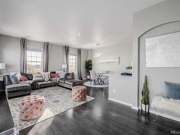 Welcome to this stunning end-unit that lives like a single-family home in Ash Meadows. Offering 2 bedrooms, 2.5 bathrooms, and a spacious 2-car rear garage, this home is designed for comfort and convenience. Situated among open spaces, the property offers unparalleled privacy and serene views. Step into a beautifully upgraded interior with abundant natural light highlighting the open floor plan. The cozy living room features a striking fireplace with custom tile, creating an inviting ambiance. The modern kitchen showcases sleek stainless-steel appliances, quartz countertops, flat-panel white cabinetry, and a pantry. The peninsula with a breakfast bar makes a perfect spot for casual meals. Upstairs, you'll find a versatile loft that offers mountain views and has endless possibilities as a TV room, workout room, home office, playroom, or convert to a 3rd bedroom. The spacious primary suite boasts a vaulted ceiling, TWO large walk-in closets with closet kits, and an ensuite bathroom with dual granite sinks. Need a moment of tranquility? Relax on the private front patio and soak in the views of the peaceful plains. This gem is near a public park, pond, trails, and open spaces. Its proximity to grocery stores, the light rail station, E-470, and the airport makes it a commuter’s dream while still being close to nature and recreation. With contemporary finishes, abundant storage, and a prime location, this home offers the perfect blend of style, functionality, and accessibility. Don’t miss out—schedule your showing today and make this your new home!