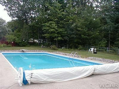 Great family home with many lifestyle options. Special features include new floor coverings in the bathrooms, kitchen, and family room. The laundry room includes the washer, dryer, chest freezer, new paint and a new ceiling. The heated pool includes all equipment. The property also includes a studio building with heat and bathroom, a barn with potbelly stove, all on 5 beautifully wooded acres. The home features a lower walkout level with kitchen, family room with wood stove, additional living space, main level with sunken living room, spacious kitchen-dining with all appliances, master bedroom plus bath; large attached garage with outdoor deck overlooking back yard. State park trail provides recreational options.