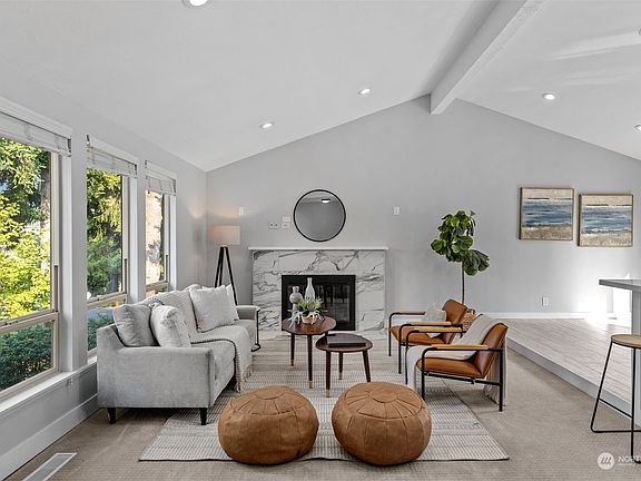 Welcome to this exquisite charmer nestled on a sprawling corner lot. Upon entering, you'll be greeted by a flexible floor plan that effortlessly blends functionality with style. The sunken living room immediately captures your attention, boasting a cozy wood fireplace with high vaulted ceiling adding a touch of grandeur creating an open and inviting atmosphere. For those who love to entertain or spend quality time, the lower level features an entertainment/family room. Stepping outside, you can enjoy a party-sized deck and patio that overlooks the fully fenced, level backyard. This outdoor haven is a canvas for your imagination with its professionally designed low maintenance landscaping adding a touch of natural beauty.