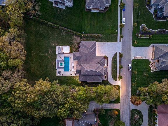 Nestled on a picturesque treed lot, this reverse one and half story home is a testament to modern luxury and architectural elegance. The main level of the home features 30 foot ceilings in the entry and great room. The heart of the home is the chef’s kitchen, a culinary dream come true with top of the line appliances and an oversized waterfall Quartzite island, stainless steel Thermador fridge and freezer, 6 burner Thermador cooktop with pot filler and griddle, Thermador steam oven, Thermador convention oven, warming drawers and an oversized pantry. The main level features 2 primary suites that offer unparalleled comfort and privacy. These retreats are thoughtfully appointed with walk-in closets and spa-like bathrooms with vessel soaking tubs . Enjoy the 6 car garage and circle driveway. Descending to the lower level, you'll discover an additional primary bedroom retreat that exudes tranquility. This expansive suite offers a private escape with a luxurious bathroom that includes a vessel soaking tub, large walk-in closet and sitting area. There are 2 additional bedrooms with en-suite bathrooms and a large laundry room on this level. Entertain in the large bar area with glass wine room, rec room and theater. The space underneath the garage has been excavated and is perfect for a gym and additional storage. The backyard is private and treed with a fence, pool, hot tub and a top of the line outdoor kitchen including a Heston grill. The private oasis creates a space for relaxation and entertainment. The covered deck off the main level great room offers a perfect spot for morning coffee or evening cocktails. Under the deck is a screened porch for bug-free outdoor relaxation. With its harmonious blend of indoor and outdoor living, this home offers an unparalleled living experience. It’s a place where modern luxury meets natural beauty, creating a space you will be proud to call home!