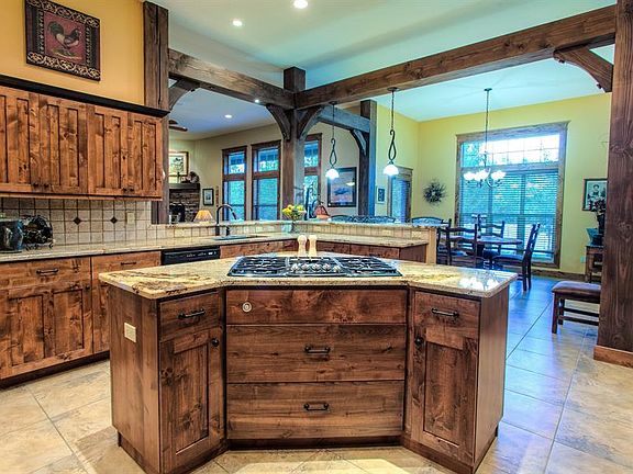 Exquisite SINGLE LEVEL Custom built beauty in Rimrock Forest Estates. Boasting Rustic beams in an OPEN PLAN KITCHEN, LIVING, DINING floorplan with high-end features gracing every inch. 3,461 SF, 3 BR plus Bonus/Bedroom, 2.5 Ba, Formal & Informal Dining, Private Office, 11' High Vaulted Ceilings, Large Beam Trusses in Entry, Built-ins & Gas Stone Fireplace in Living Room. Gourmet Kitchen w/Granite Slab Counters, Gas Range 5 Burner Cooktop, Breakfast Bar, Island, Walk-in Pantry, Wall Oven. Hand scraped hardwood floors, tile & carpet. Art Niche. Rustic Knotty Alder Wood Cabinetry, Trim & Doors. Spacious private Master En Suite. Large fenced inviting backyard with Gas Firepit & Gas BBQ Line. 3 Car oversized garage landscaping with 2 water features and more! Amazing quality, Timeless appeal.
