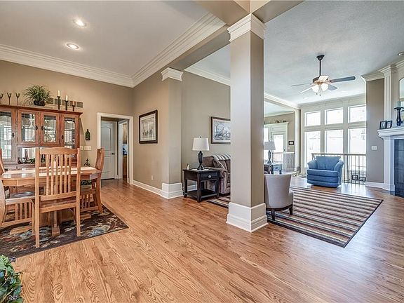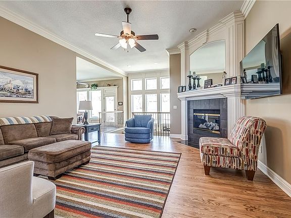 Step into this pampered Reverse 1,5 Story home nestled on a serene cul-de-sac street. Entertain with ease in the spacious living room featuring a charming corner fireplace and an adjacent formal dining area. The chef's kitchen is a culinary haven with new KitchenAid stainless appliances, sleek solid surface countertops, an island, and a pantry, complete with a refrigerator. Enjoy cozy gatherings in the breakfast area, boasting ample space for a large dining table. Hardwood floors (refinished September, 2023) grace the entry, living room, kitchen, and dining areas, enhancing the seamless flow throughout. Retreat to the expansive master bedroom suite featuring a vaulted ceiling, his and her walk-in closets, dual vanities, a whirlpool tub, and a generously sized shower. Experience the convenience of a second main floor bedroom, ideal for both guests and remote work, doubling as a dedicated office space. The main floor laundry room is thoughtfully equipped with a convenient counter. The lower level offers additional living space with a sizable rec room, complete with a secondary fireplace, wall bar and game area, a third bedroom with a walk-in closet, and a full bath. Step outside to the patio and enjoy the privacy of the tiered backyard. Lawn maintenance provided and watering is made effortless with Rachio Wi-Fi sprinkler controls. New furnace (November 2023). The extended three-car garage provides ample space for vehicles and storage. Don't miss the opportunity to call this stunning property home.