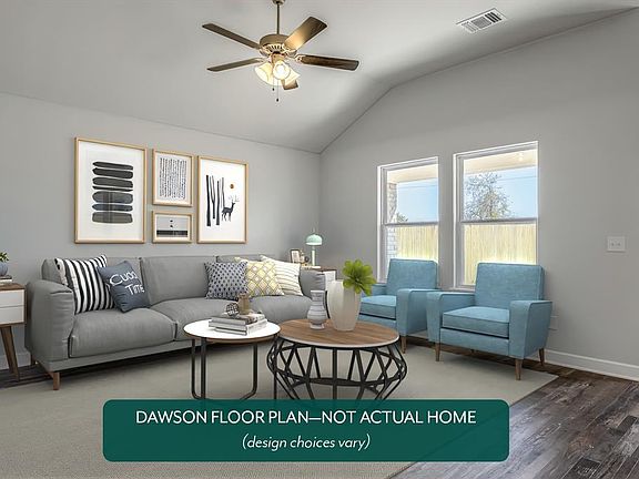 This beautiful craftsman-style home is situated on a spacious homesite in a cul-de-sac. It features a garage with additional storage and a roomy living room with an open layout and durable hard surface flooring. The kitchen is perfect for entertaining, equipped with quartz countertops and a gas range. The primary bedroom offers ample space along with a walk-in closet, and the bath features a quartz vanity and a tiled shower. Skyline Trails is located in the highly sought-after Mustang school district, and our residents will love the playground, splashpad, walking trails, and creek. Included features: * Peace-of- mind warranties * 10-year structural warranty *Guaranteed heating and cooling usage on most Ideal Homes * Fully landscaped front & backyard * Full Guttering* Fully fenced backyard. Floorplan may differ slightly from completed home.