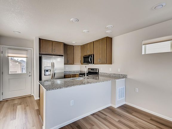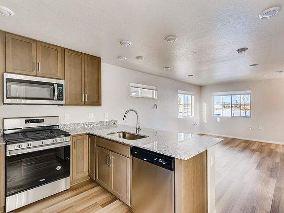 AVAILABLE NOW Newly developed community, built in 2021 Approx. 896 square feet, 2 story Stainless steel appliances: refrigerator, gas range/oven, microwave, and dishwasher Stacked washer and dryer Contemporary finishes, soft close cabinets & drawers, granite countertop, cellular shade window treatments Covered front and back porch. Insulated 1 car garage and 1 allotted parking pad 5ft privacy fenced in backyard with synthetic turf Central A/C, forced air & heat Pet friendly Utilities included with rent: water, trash, and recycling Community Amenities Playground Walking paths Community Vegetable garden Snow removal Easy access to I-25 and I-76, close to Denver Int'l Airport Qualifications & Rental Terms: 2.5x verifiable monthly net income to rent ratio Minimum 650 FICO score Government issued photo ID required Tenant must carry renter's insurance Security deposit is 1.5x rent 2 pets max. Pet deposit is $500/pet. Pet rent is $30/month/pet. 12 Month Lease NO SMOKING/VAPING